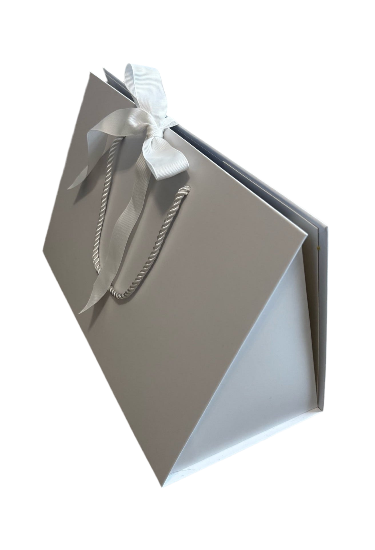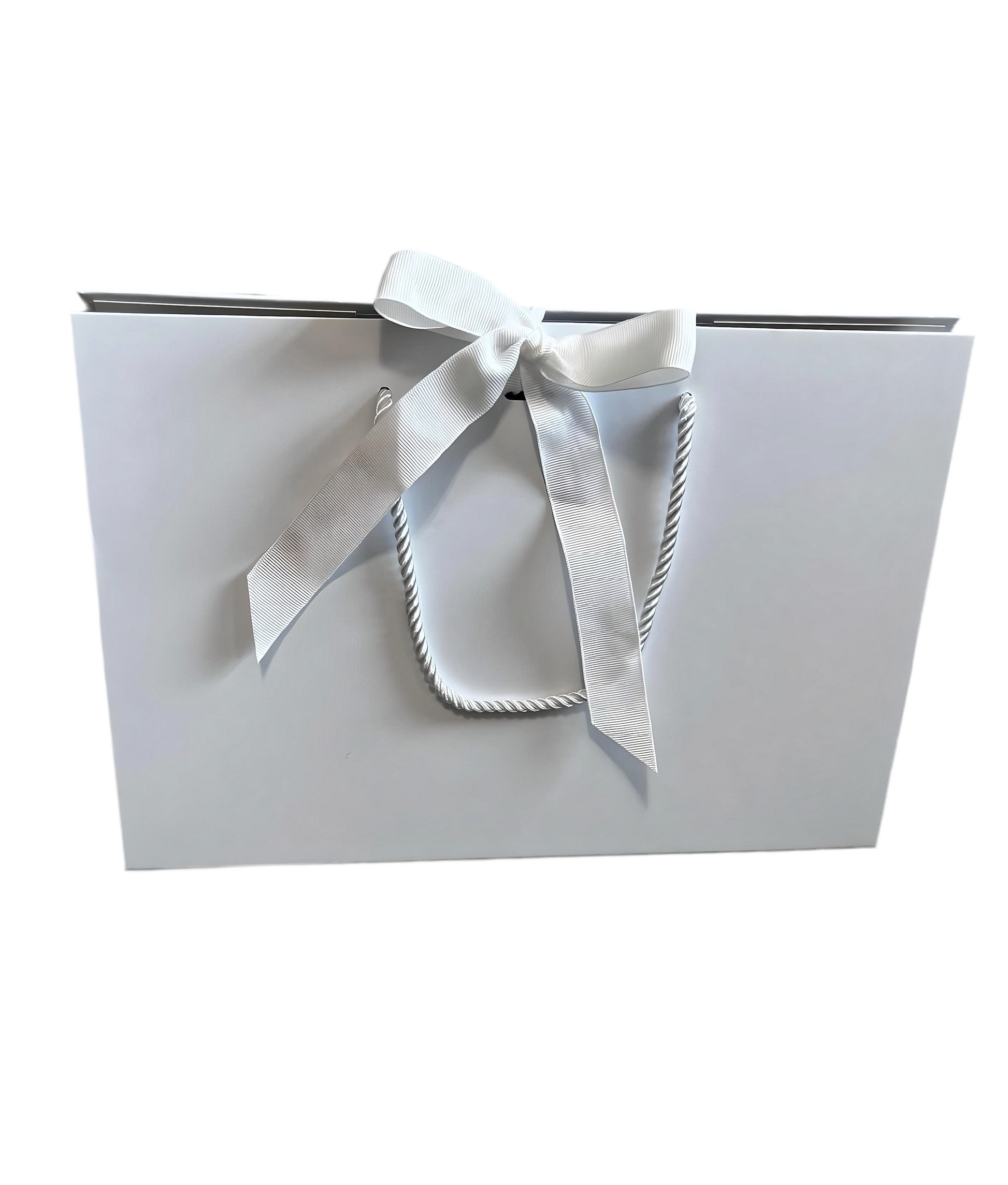 All of these items are lovingly packed inside a beautiful, unique, white box bag with a bow ribbon fastening and handles for easy handling and carrying.Â