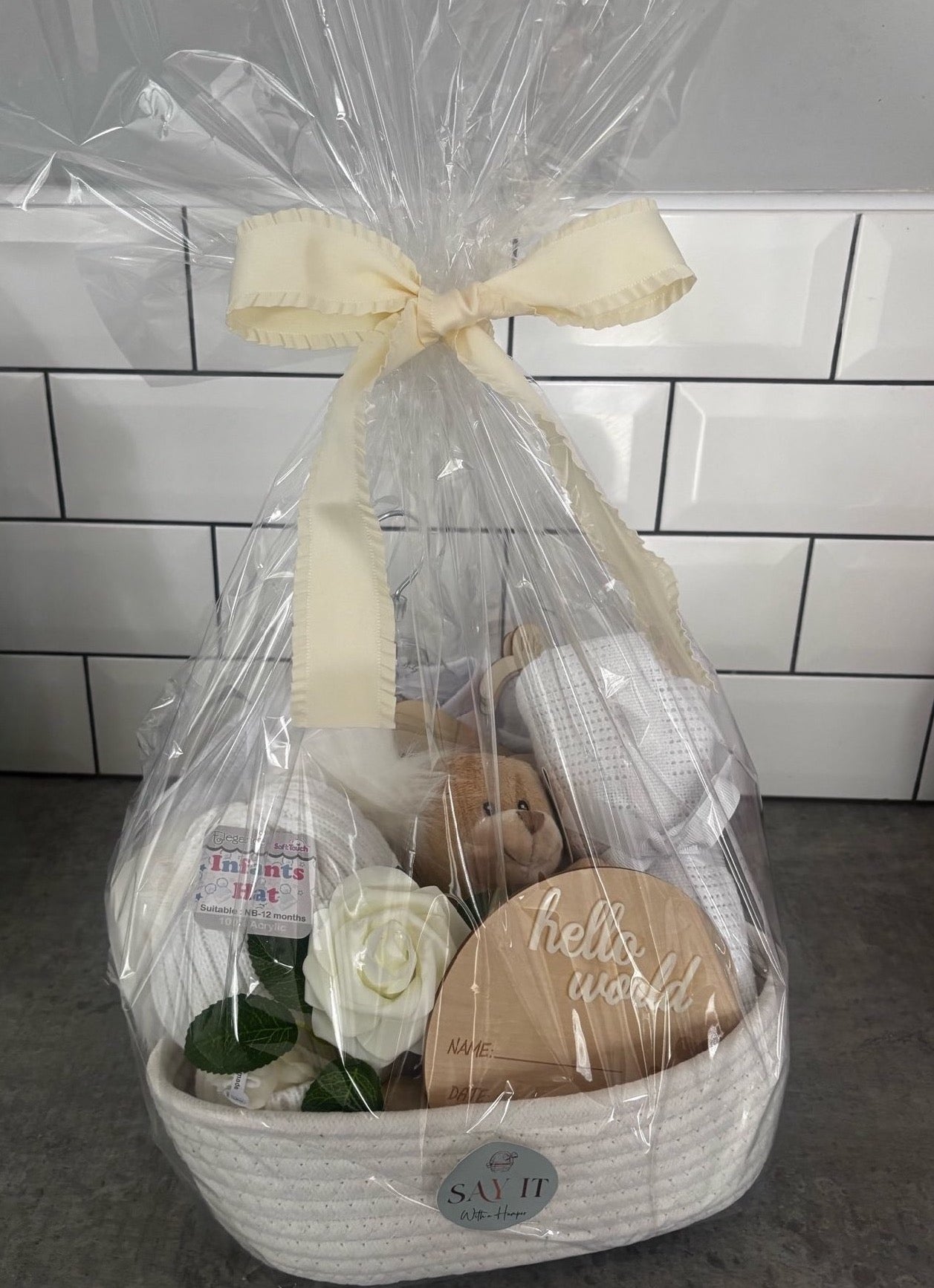 This hamper is just perfect for a new baby or baby shower gift. You will receive the following: